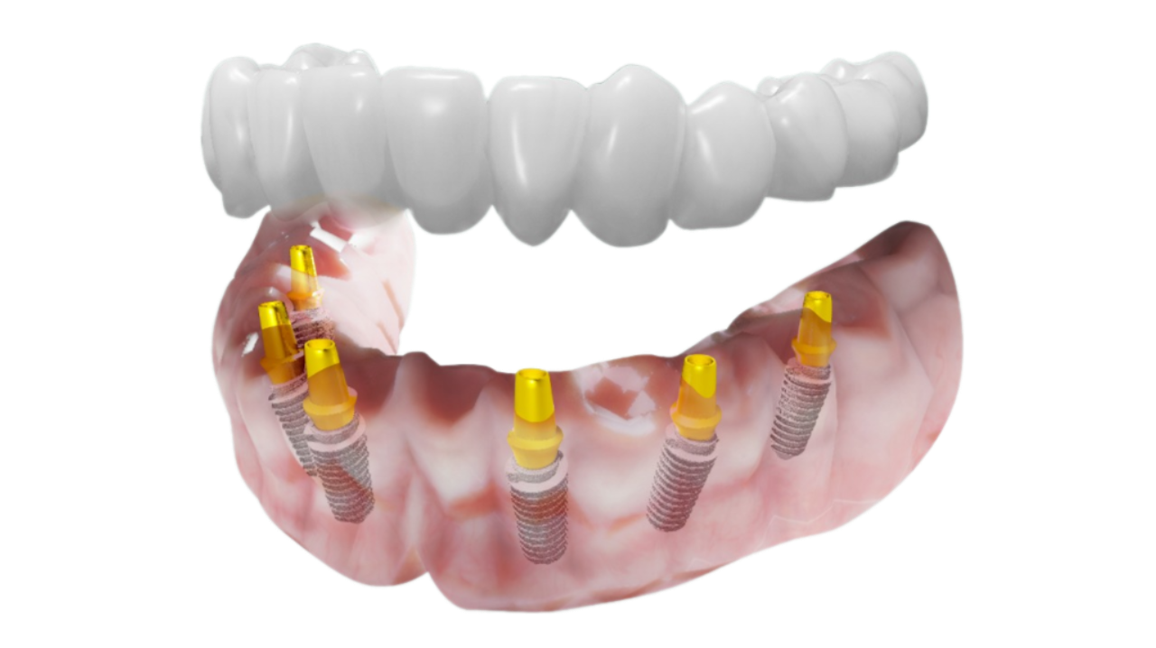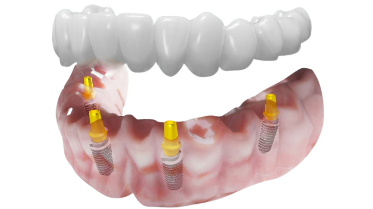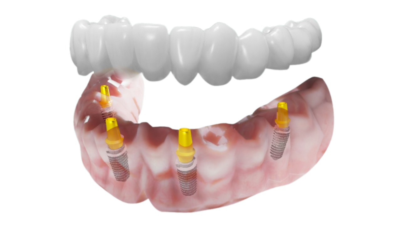 При данной процедуре специалисты используют 4 имплантата для крепления всей зубной дуги, что обеспечивает прочность и надежность конструкции.
