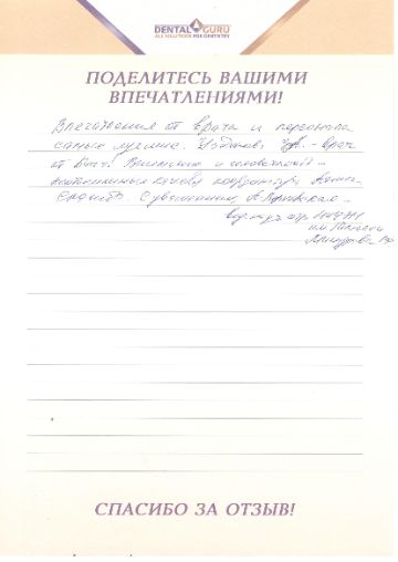 У вас есть возможность получить лечение с применением искусственного интеллекта, цифрового навигационного шаблона, виртуального консилиума и многое другое. Вы получаете лечение по самым современным технологиям, что даёт уверенность в качестве и безопасности лечения