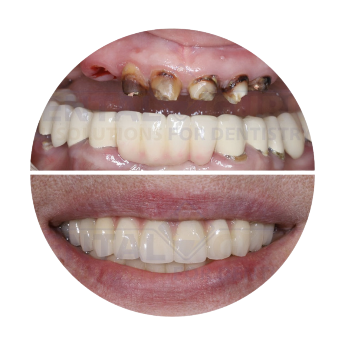 Проведена реабилитация с помощью дентальных имплантатов. Одновременно с удалением оставшихся зубов были установлены имплантаты с немедленной нагрузкой